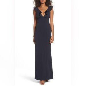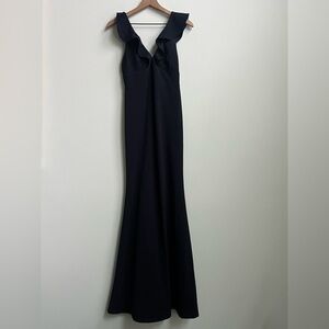 LULUS Navy Perfect Opportunity Ruffle Trumpet Maxi Dress bridesmaid Event prom