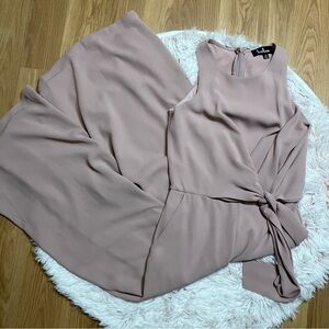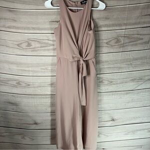 In excellent used condition no rips, tears or stains. Lulus Exclusive! You'll be movin' on up in the world with the Lulus On Track Mauve Midi Jumpsuit! Sleek woven poly sweeps across a rounded neckline, and sleeveless bodice with tying detail at front. Relaxed, midi culotte pants have rounded pockets. Hidden back zipper/clasp.