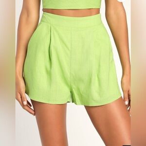 đź’šđź’šLULUS Perfectly Posted Lime Green Linen High-Waisted Shortsđź’šSZ S