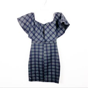 Lulus Plaid Ruffled On/Off Shoulder Mini Dress. Hidden back zipper for a seamless appearance. Gently worn pre-owned condition with no visible flaws noted.