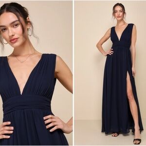 $98 Retail LULUS Prom Wedding Bridesmaid Special Event Sexy Classic Flowy Elegant Romantic Heavenly Navy Hues Maxi Dress NWOT (new without tags)