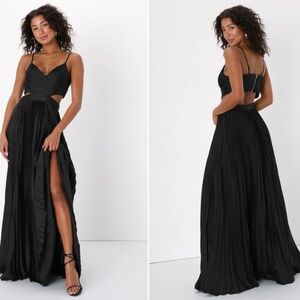 $118 Retail LULUS Prom Wedding Bridesmaid Got the Glam Black Blue Pleated Cutout Maxi Dress NWOT (new without tags)