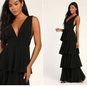 $118 Retail LULU's Prom Wedding Bridesmaid Tiered Ruffles Boho Bohemian Black Maxi Dress NWOT (new without tags)