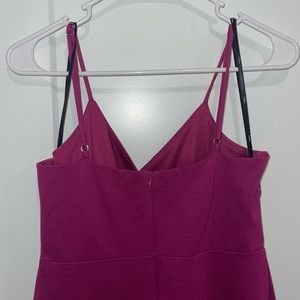Stretchy knit spandex dress with knit lining. Adjustable straps and form fitting silohette.