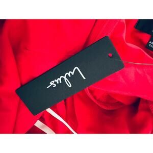 LULUS Radiant Floral Flower Chiffon Ruffles Maxi Dress Ruby Red Size Medium NEW
