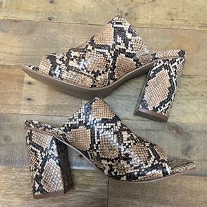 NWOB Lulus Raelynn Python Croc Peep-Toe Mules | Size: 8 | print: Tan python | 4” inch block heel | please see pictures and video as they are part of the description.