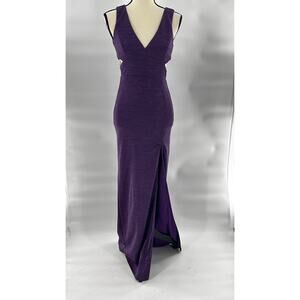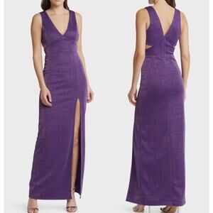 LULUS Ready to Stun Dress XS NWOT Purple Cutout Lurex Maxi Metallic Gown Glam