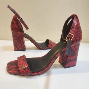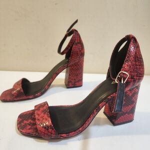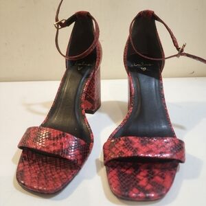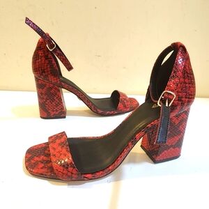 LULUS Red Leather Upper Ankle Strap Block Heels Sandals size 7.5