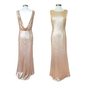 LULU'S Rose Gold Sequin Open Back High Neck Formal Maxi Dress XS