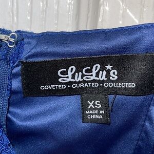 LULU'S Royal Blue Lace. V Neck Midi Dress, Size XS