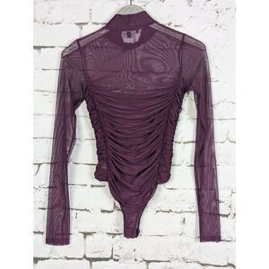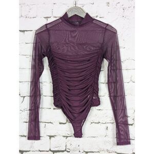 LULUS Ruched Mesh Bodysuit Bodycon Goth Purple Sheer Stretch Club Party Medium