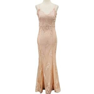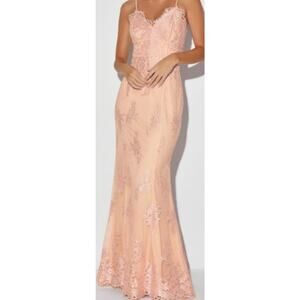 LULU'S S Came to Dance Blush Pink Embroidered Sleeveless Mermaid Maxi Dress B149