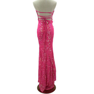 LULU'S S Glam Aura Hot Pink Iridescent Sequin Strapless Bodycon Maxi Dress B20