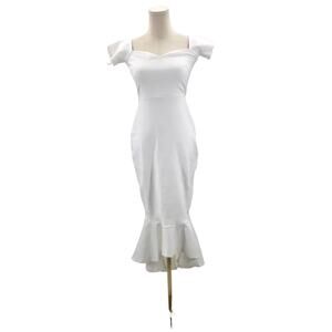 LULU'S S White How Much I Care Ivory Off-the-Shoulder Midi Dress NEW B27
