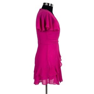 LULUS SWEET LIKE YOU HOT PINK RUFFLED SURPLICE CHIFFON MINI DRESS