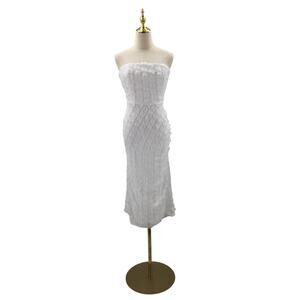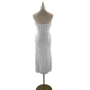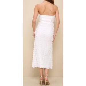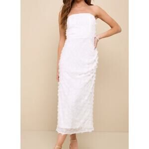 LULU'S SZ L Dreamy Girl White 3D Floral Applique Strapless Midi Dress B146