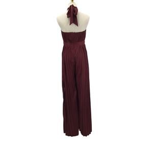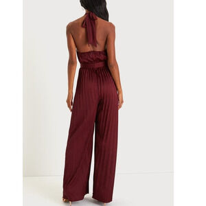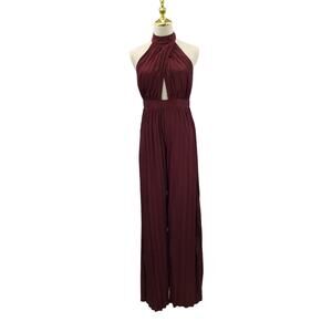 LULU'S SZ M Burgundy Confident Impression Satin Halter Cutout Jumpsuit NEW b94