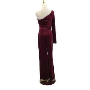 LULU'S SZ M Extraordinary Vibe Burgundy Velvet One-Shoulder Jumpsuit NEW b24