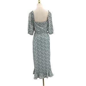LULU'S SZ M Green Cute Contentment Floral Button-Front Ruffled Dress B115 flaw
