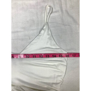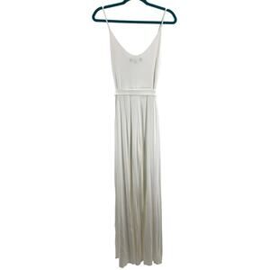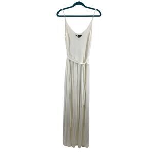 LULU'S SZ M Just Breathe White Belted Slit Rayon Blend Wide Leg Jumpsuit NEW B23