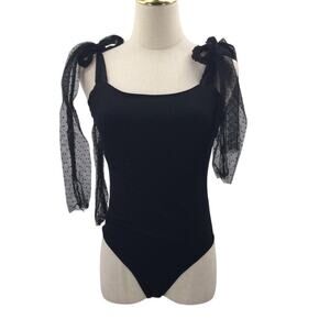 LULU'S SZ M Thoughtful Charm Black Swiss Dot Tie-Strap Bodysuit NEW B116