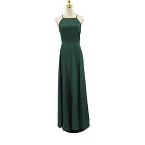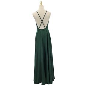 LULU'S SZ M Total Beauty Emerald Green Satin Backless Maxi Dress NEW B152