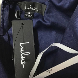 LULU'S SZ S Blue Height of Elegance Plunge Neck Mermaid Maxi Dress NWT 0B8 *flaw