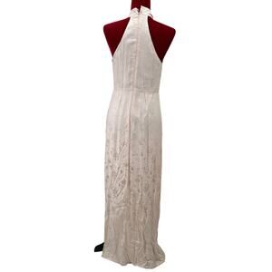 LULU'S SZ S Red Carpet Ready Peach Floral Satin Jacquard Maxi Dress NEW B23 flaw