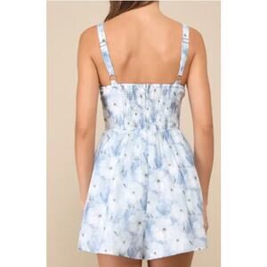 LULU'S SZ S Truly a Cutie Light Blue Floral Organza Bustier Romper NEW B122