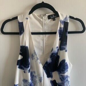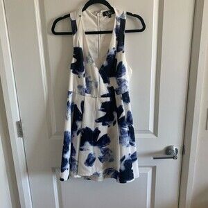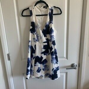 Lulus party dress white and blue Size S mini dress v-neck back zipper 100% polyester.