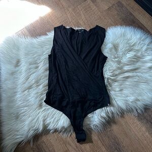 LULU’S Staying Basic Black Faux Wrap Sleeveless Bodysuit