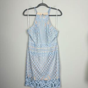 LULU’S | Steal A Kiss Lace Halter Dress Baby Blue & Nude Tan Women’s Size XL