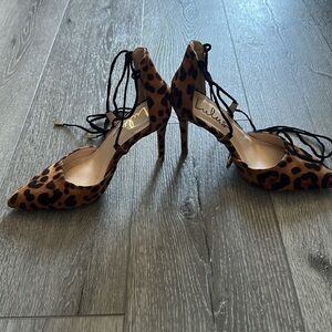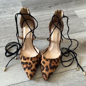 NWOT- Lulus Leopard Print, Faux Suede Stiletto