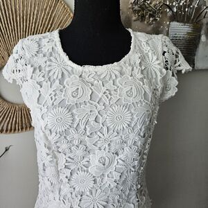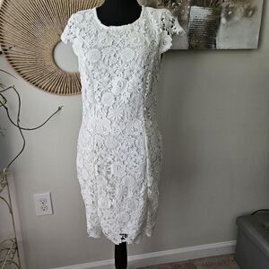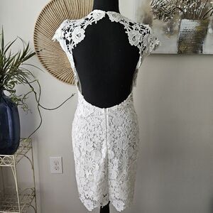 LULUS Stylish Splendor White Backless Lace Bodycon Midi Dress Size Small