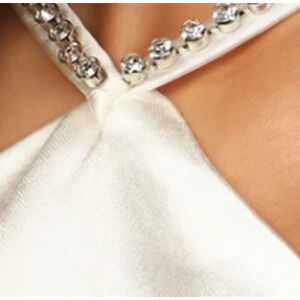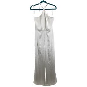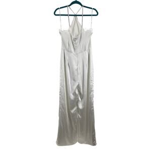 LULU'S Sz S Dose of Romance Ivory Satin Halter Wide-Leg Jumpsuit B169 *flaw