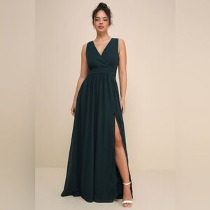 LULU’S Thoughts Of Hue Emerald Green Surplice Maxi Dress