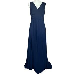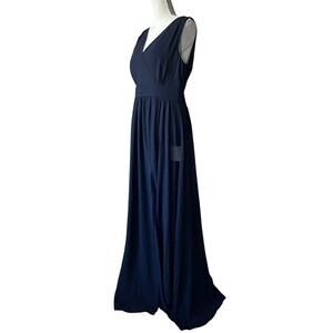 LULUS Thoughts of Hue Navy Blue Surplice Sleeveless V-neck Maxi Dress-Size M