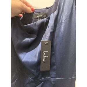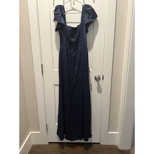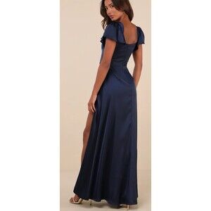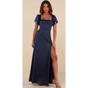 LULUS Ultimate Sweetness Navy Blue Satin Flutter Sleeve Maxi Dress Size Medium M