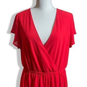 LULUS Vibrant Red, Lightweight & Airy, NWT, Midi Dress, Side Slit, Size XL