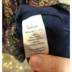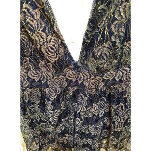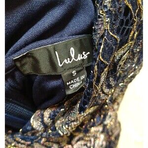 LULUS WOMEN SMALL BLUE GOLD BOHO CHIC ELEGANT FANCY SHIMMER LACE EVENING DRESS