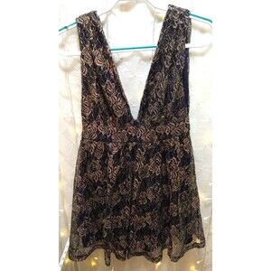 Features: DEEP V NECK, SHIMMER LACE, ZIPPER, BOHO CHIC NAVY DESIGN, MINI DRESS