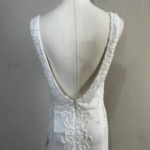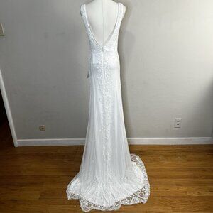 LULUS Wedding Dress Medium Passionate Romance White Beaded Sequin Mermaid Maxi