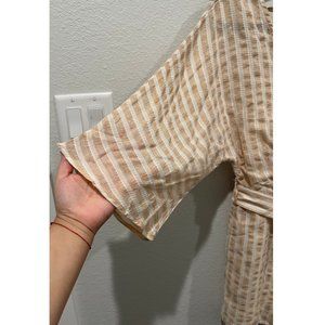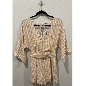 LULUS Weekend At The Beach Tan Striped 3/4 Sleeve Romper. Size XS