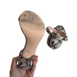 LULUS White Black Snake Print Ankle Strap Sandals Heels Size 5.5