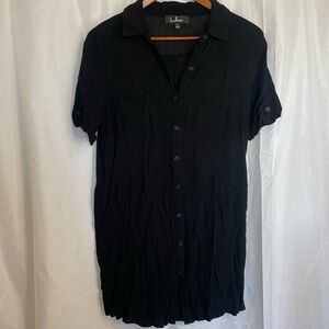 LULUS Women’s Black Button Down Mini Dress Short Sleeve Collar Size Small