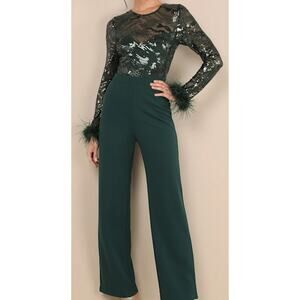 LULU'S XL Limitless Radiance Black Sequin Feather Long Sleeve Jumpsuit NWT B31