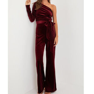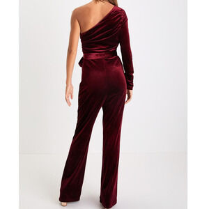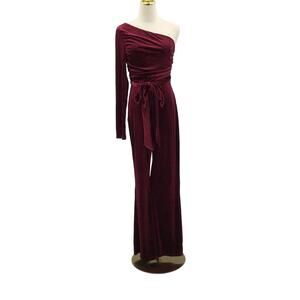 LULU'S XS Extraordinary Vibe Burgundy Velvet One-Shoulder Jumpsuit NWT b47