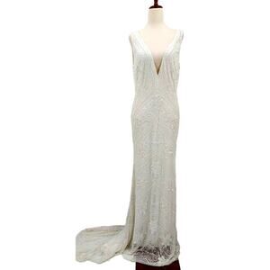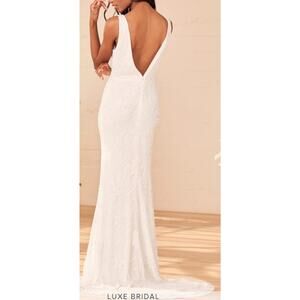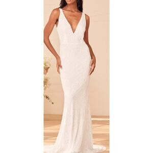LULU'S XS The Sweetest Vows White Beaded Sequin Mermaid Wedding Maxi Dress B130