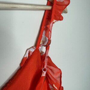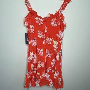 LULUS flower factor red ruffle minidress. adjustable straps. length: neckline to hem is approx 26. bust approx 16. i included lulus size chart so i would go by that for sizing. strap ties at the waist