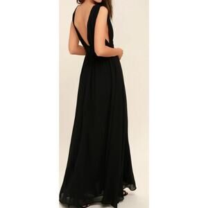 LULU'S sz L Heavenly Hues V-Neck Maxi Black Goddess Gown Dress NEW B168